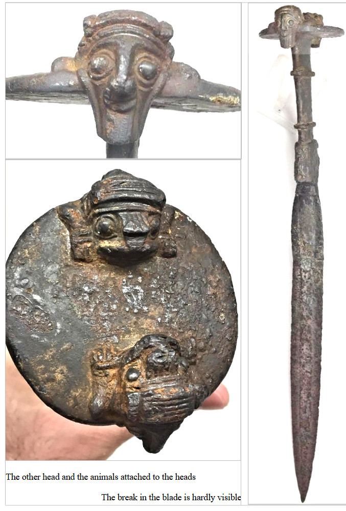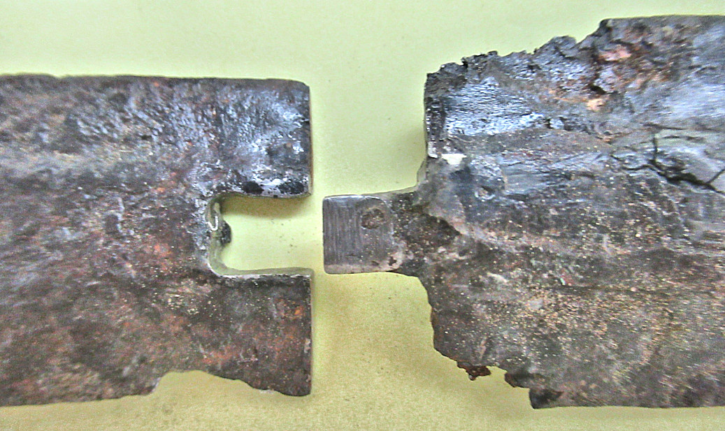 corroded animals. The blade is actually broken but an attempt at repair was made. I hand-polished the cross-secretion of