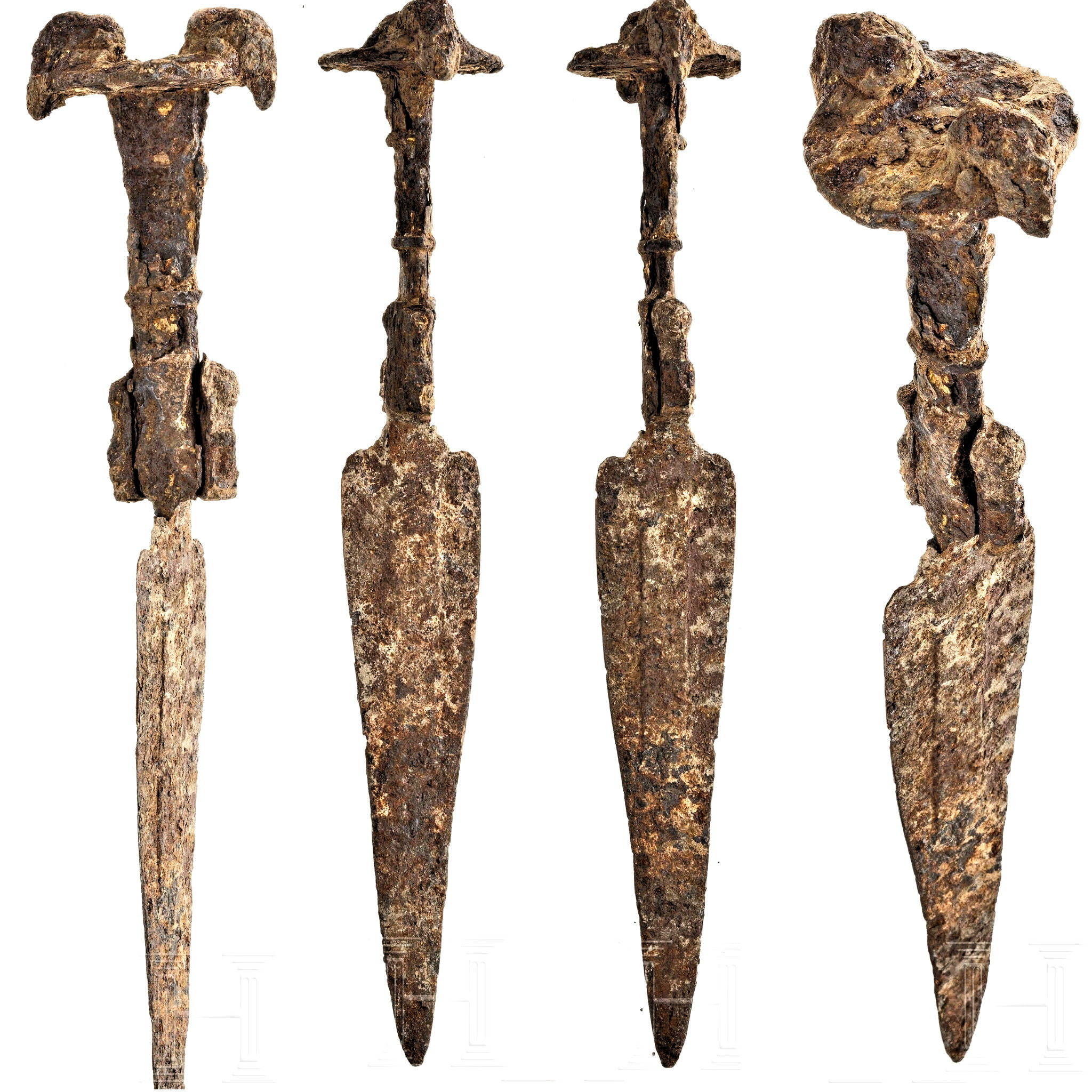 | My conclusion is The Luristan smiths could do complex repairsThe sword shown here is the only known example of this antique technique There are probably more examples of repaired blades or other parts of formerly expensive swords. It's just that nobody noticed so far. First, it might be hard to see below the corrosion layers, and second, if the repair was good, it is hardly visible. | ||||