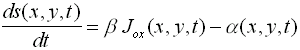 The local thickness s(x,y,t) of the oxide layer is increased by an anodic oxide generating current Jox (b is a purely geometrically defined parameter) . It decreased by purely chemical dissolution with a dissolution rate a.